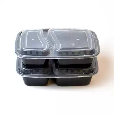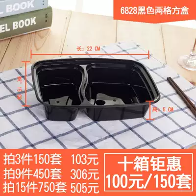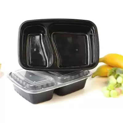 Disposable packing box rectangular two-frame lunch box Black delivery fast food lunch box thick lunch box with lid