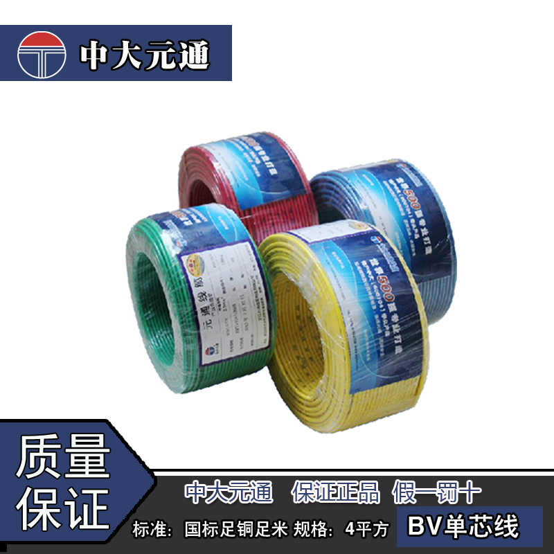 Zhongda Yuantong wire and cable BV4 square national standard copper core home improvement wire single-core single-strand 100-meter hard wire