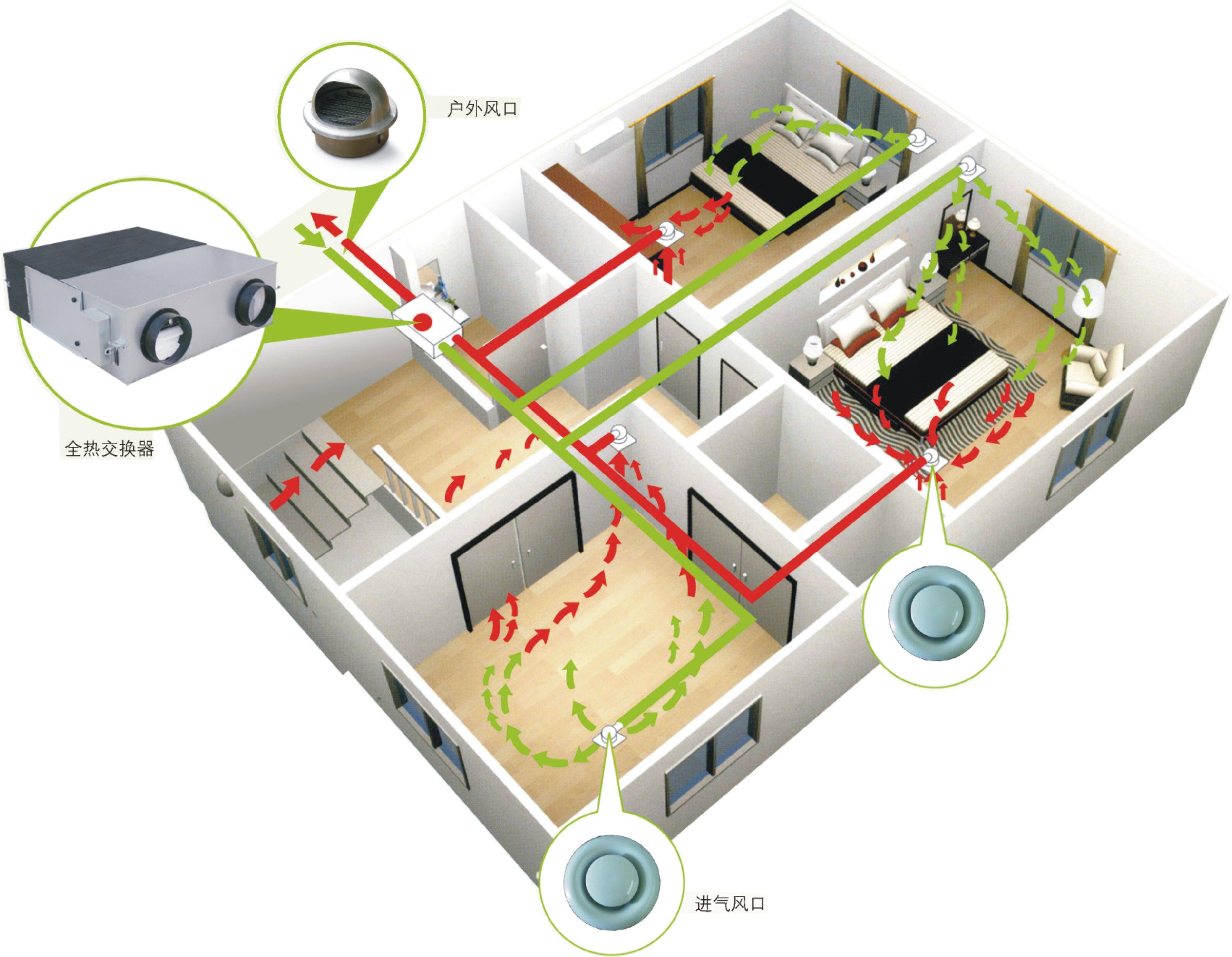 Green Island wind fresh air system Full heat exchanger Household commercial fresh air machine Indoor ventilator Hot and cold recovery filtration