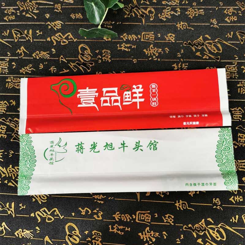 Custom disposable chopsticks set combination wet paper towel toothpick film gloves hotel seafood lobster plate making