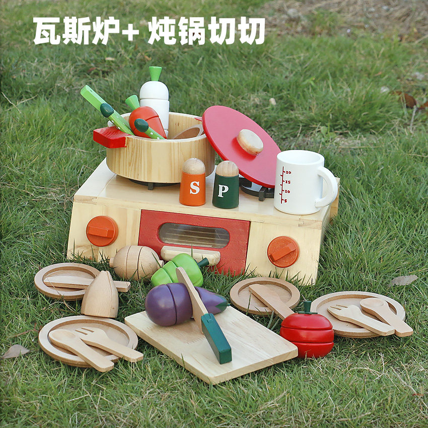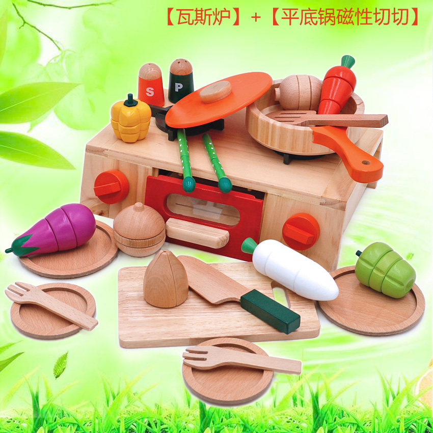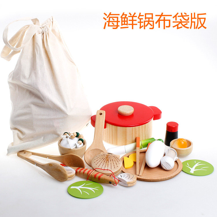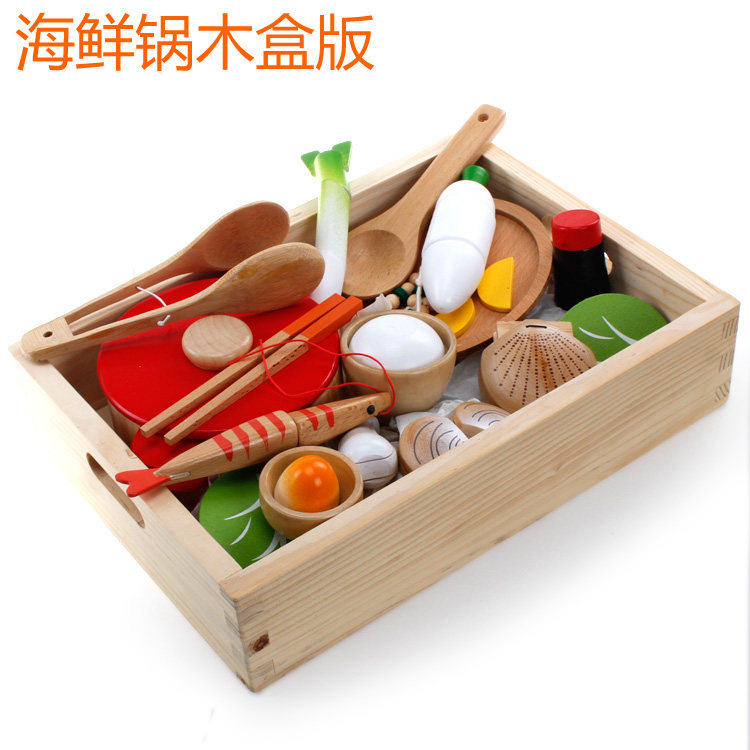Oversized wooden box magnetic vegetables and fruits cut to see Le Seafood Pan wooden children's home kitchen toys