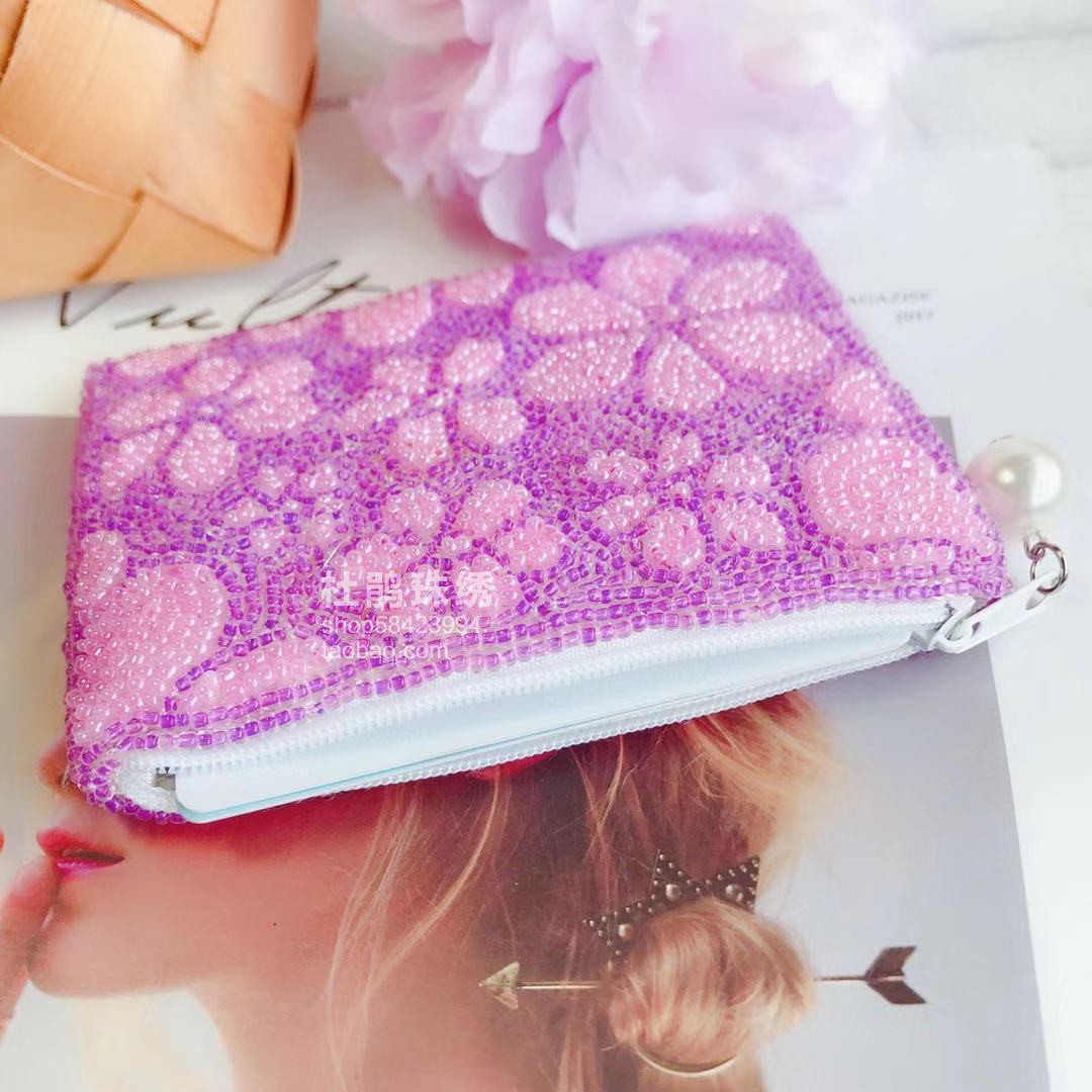 Rhododendron bead embroidery factory direct selling pure handmade beaded fresh small floral card bag earphone storage hand coin purse