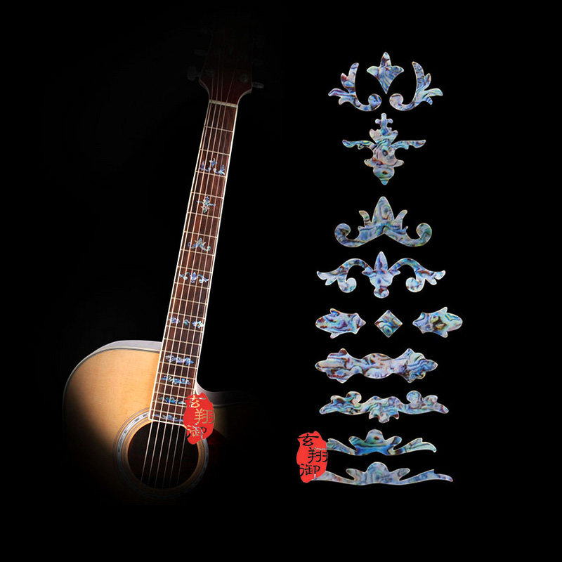 IM fingerboard sticker silver membrane shell inlaid yellow and green white shell guitar neck guard sticker decal carved