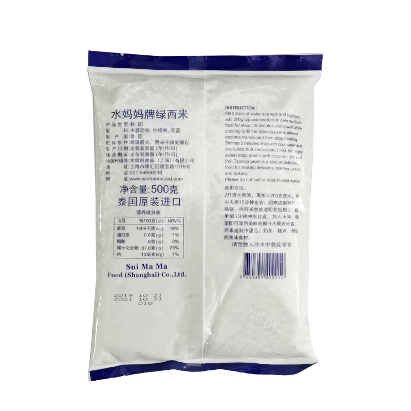 Thai Imported Water Moms Green West Rice Small West Rice Coconut Pulp Western Mildew Milk Tea Desserts 500g * 5 Pack Fruit Lots