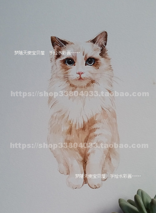 -Pure Hand Painted Pet Portrait Watercolor Kitty "original cute series" Puppet cat