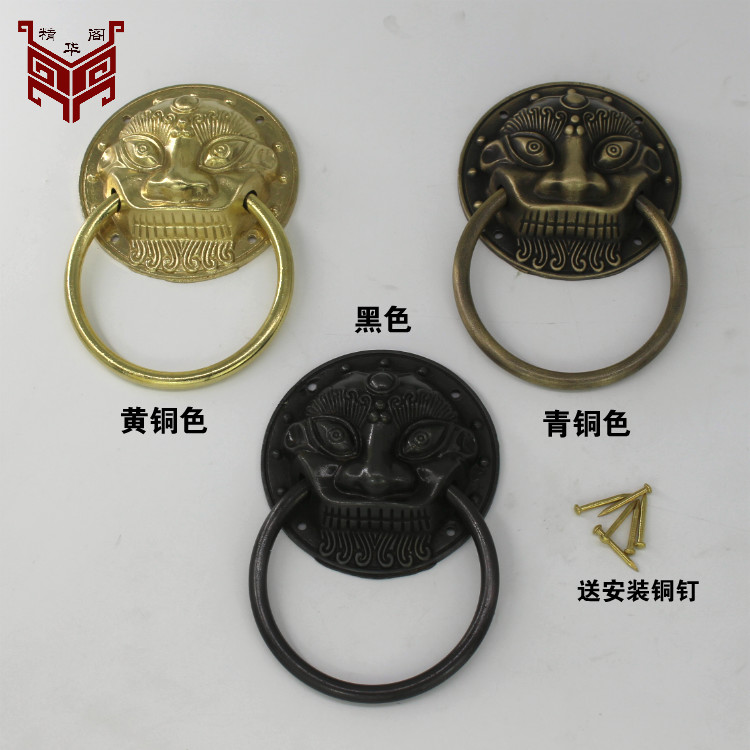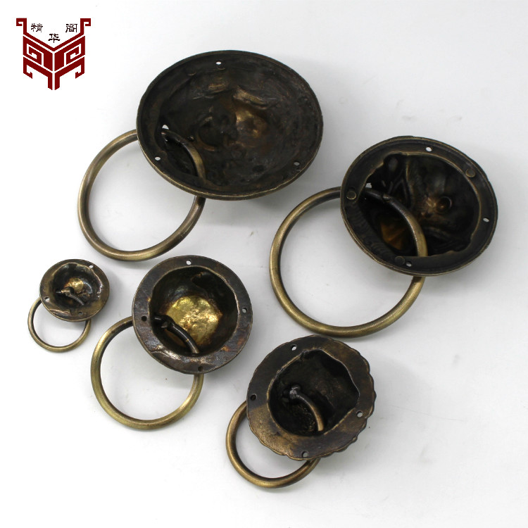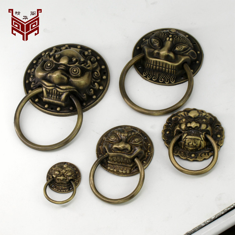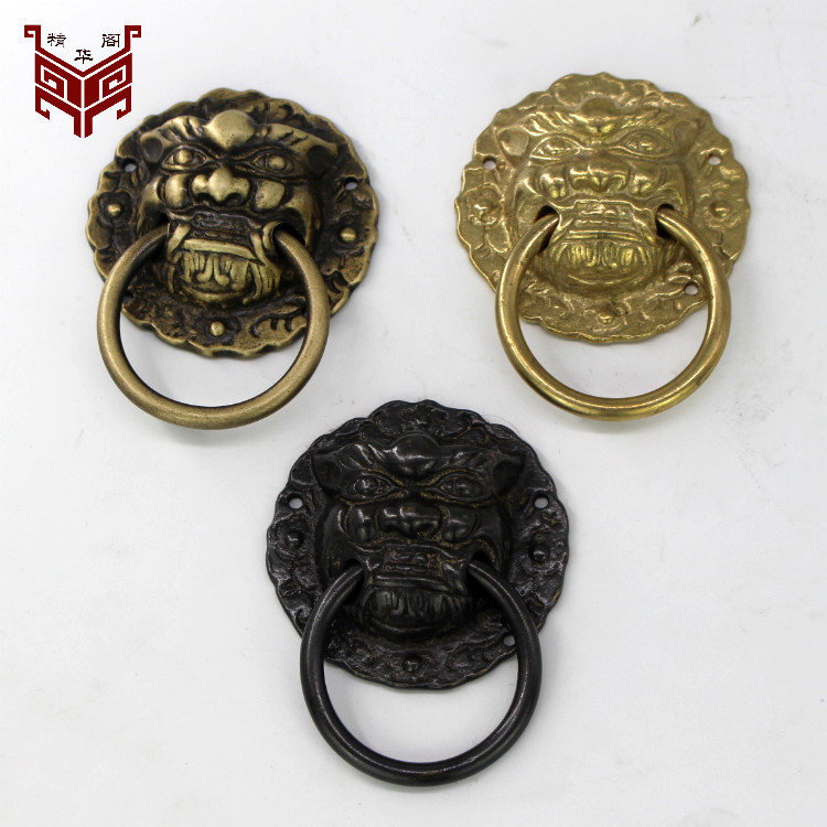 Antique pure copper animal head handle Chinese door ring tiger head big door handle lion head furniture drawer decoration small handle