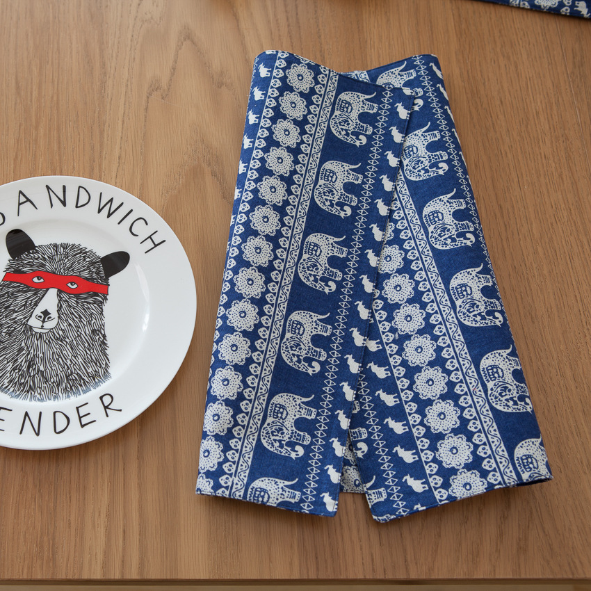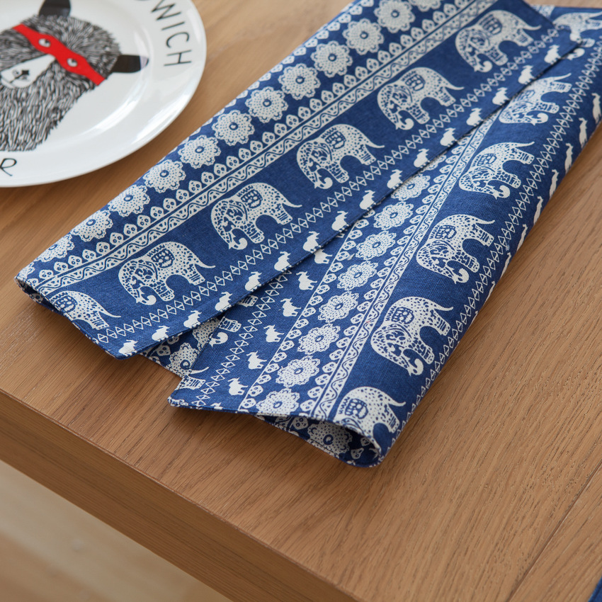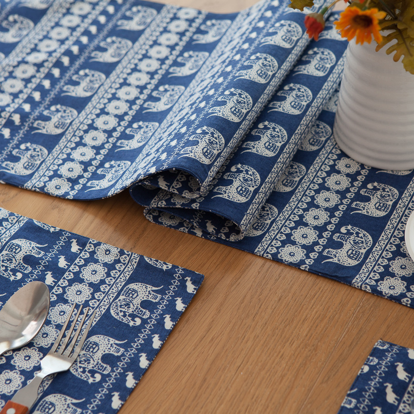 Blue Small Elephant Bohemian Creative IKEA Cotton Hemp Cloth Art Dining Mat Table Mat Western Dining Mat Dish Bowl Cup Mat