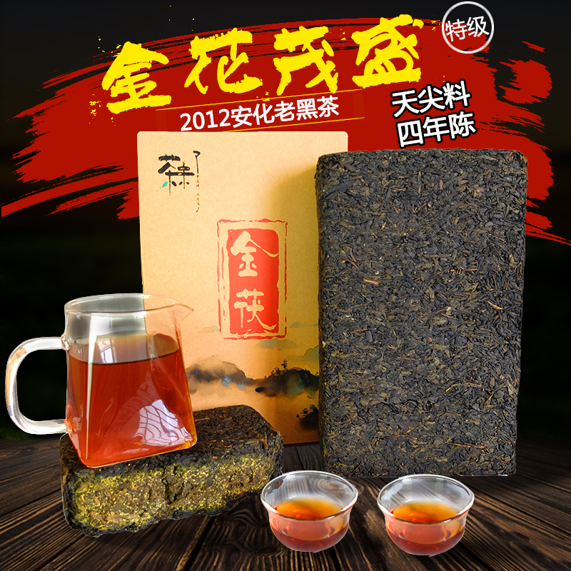 Zhengzong Anhua Black Tea Gold Flower Blossom Brick Tea Old Tea Brick Four Years Chen Tea Golden Flower Tea 1kg Hand-painted Packaging