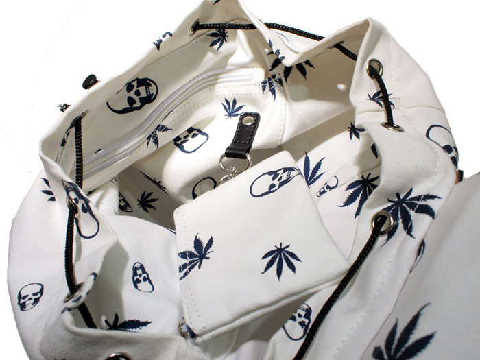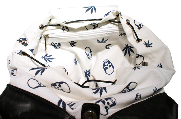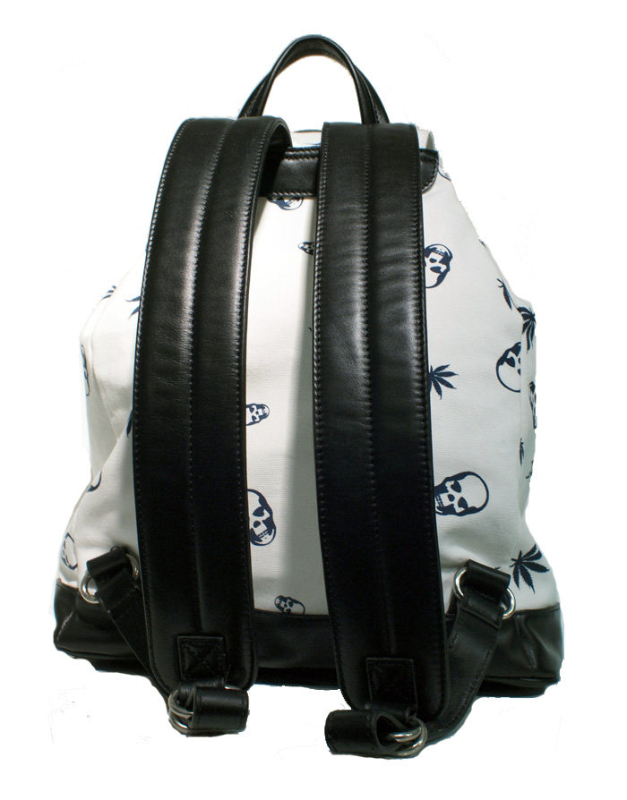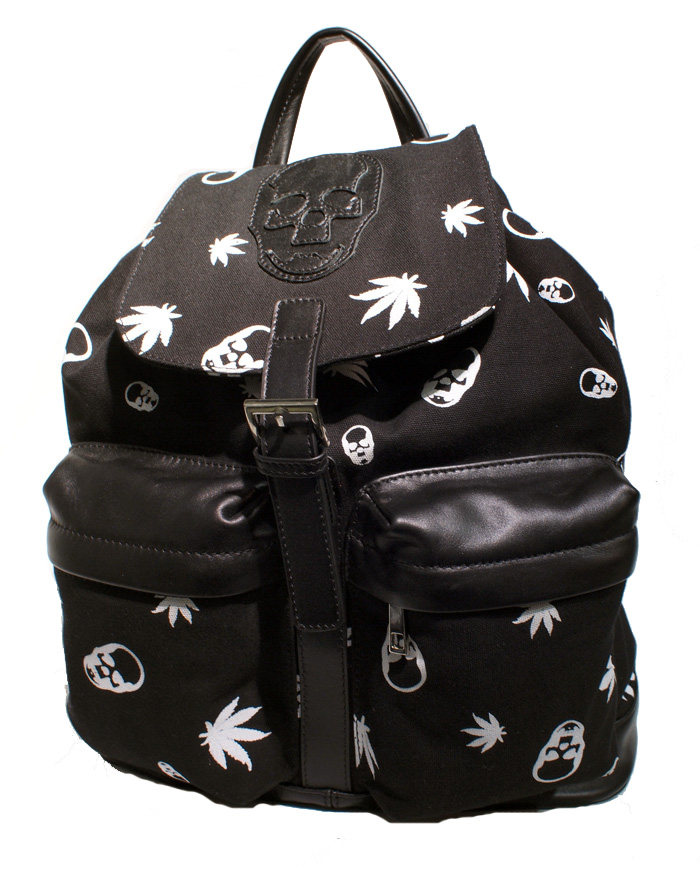 Trend Tutorial Agency] French Skull Leaf Printed Canvas and Leather Neutral Cool Black Backpack