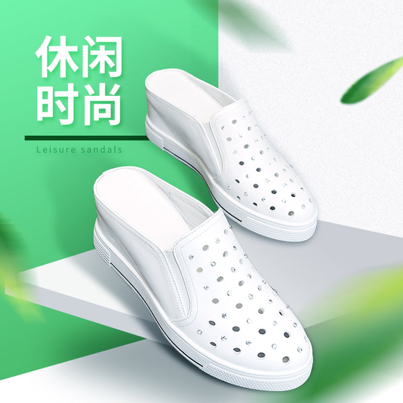 Heelless soft leather high heels leather toe half slippers women's outer wear summer wedge heels thick bottom sandals to increase the height of small white shoes