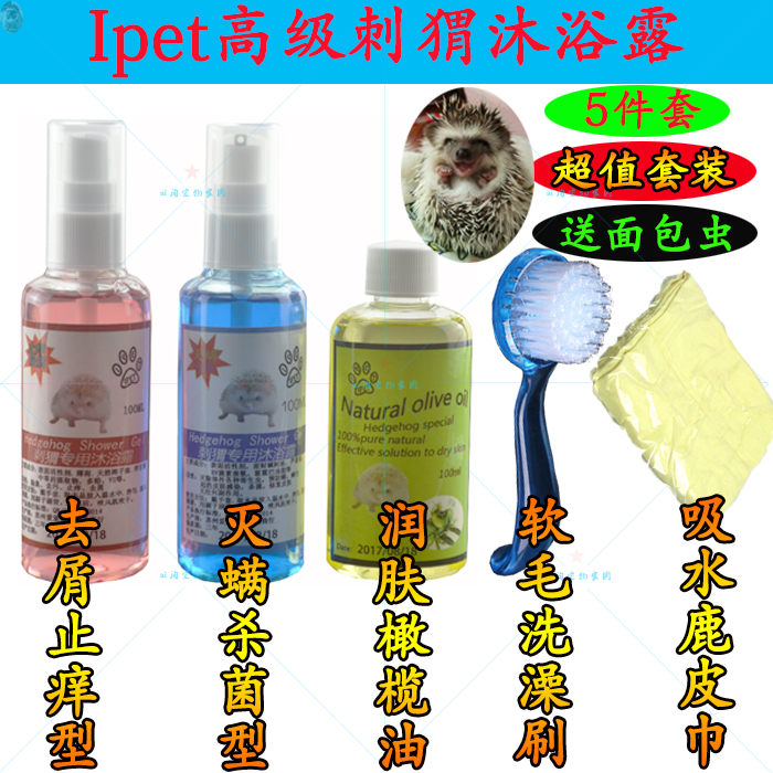 High-grade hedgehog Bath 5-piece set (send swimming ring) shower gel anti-itching and anti-mite sterilization (send brush deerskin absorbent towel Korean soft hair bath brush (only not) pure moisturizing olive oil 100ML