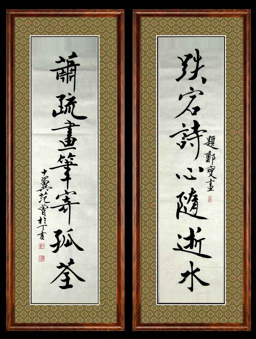 "Couplets" Fan has been copying high imitation calligraphy without mounting 137cm * 35cm * 2