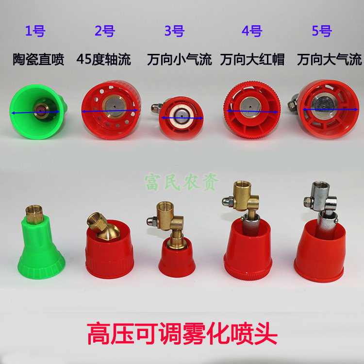 No. 1 ceramic nozzle adjustable straight nozzle No. 2 axial nozzle No. 3 small air flow adjustable nozzle No. 4 universal adjustable nozzle No. 5 large air flow adjustable nozzle