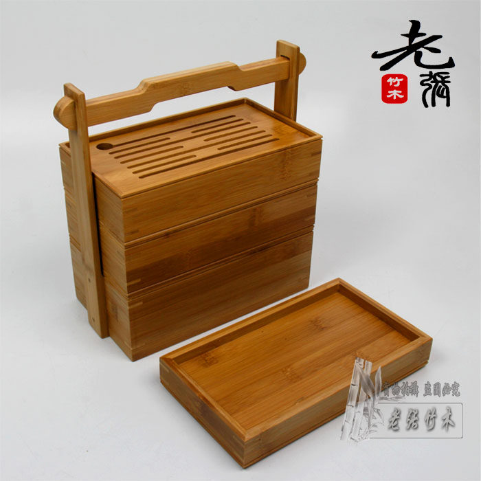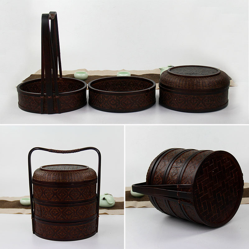 Charring three-layer section (spot) antique second floor (spot) bamboo bowl double layer tea point basket (spot) bamboo woven three-layer containing basket (spot)