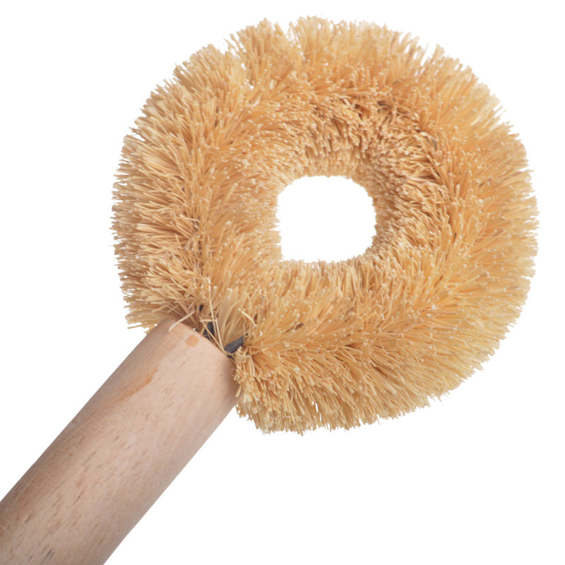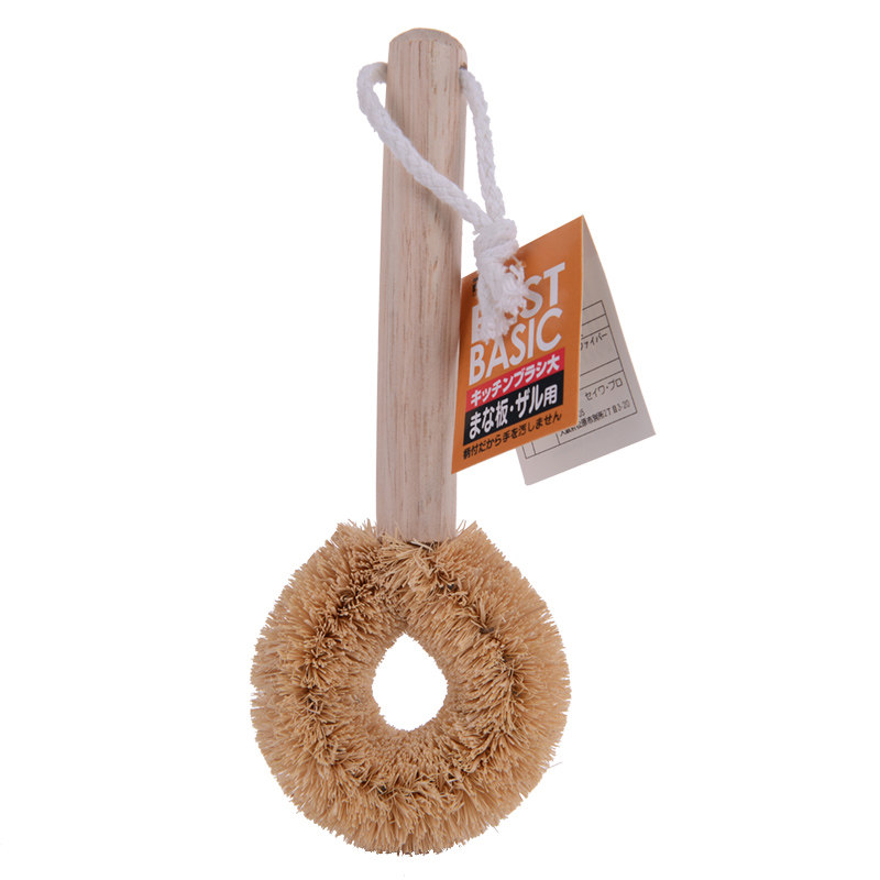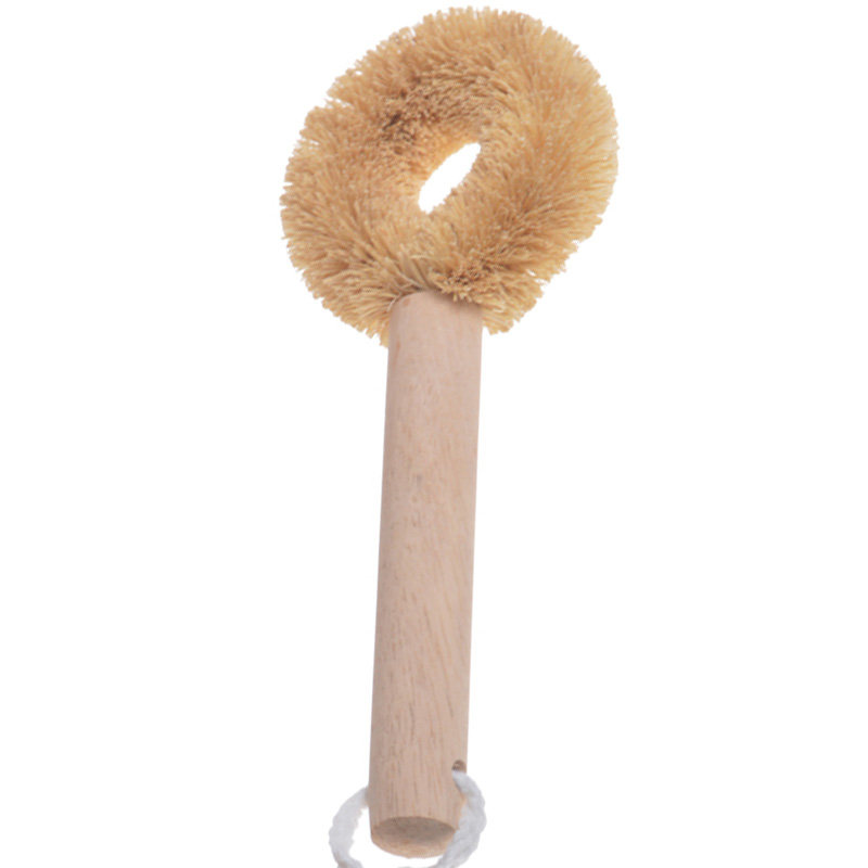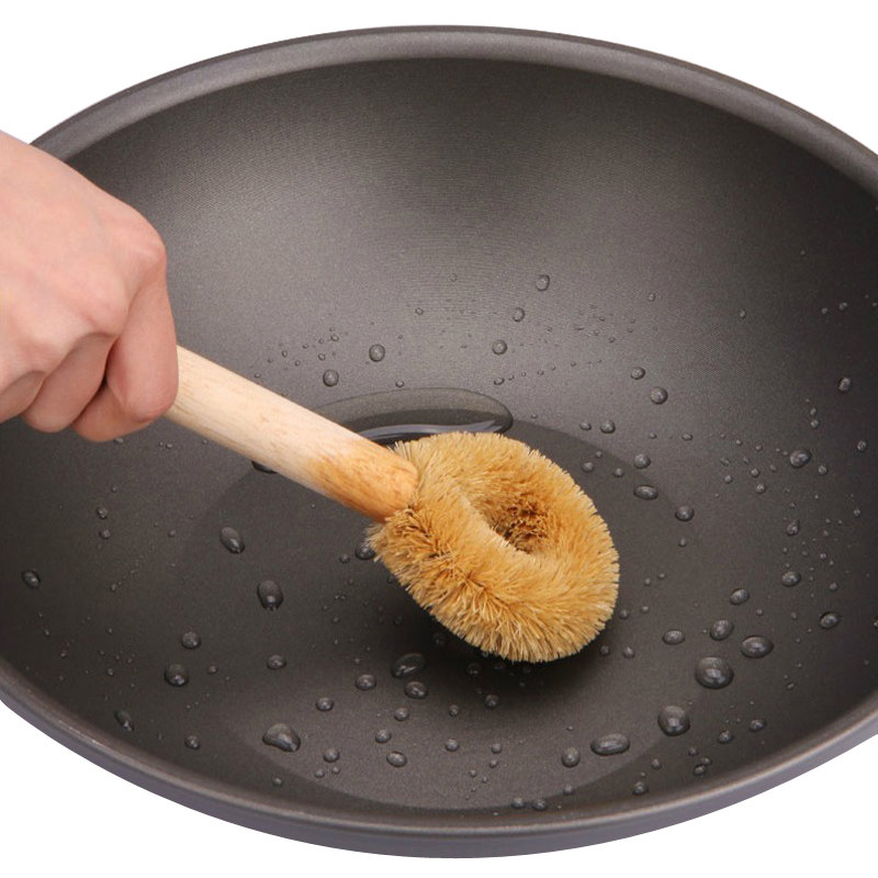 Japanese imported kitchen with brush not stained with coconut palm brushed non-stick oil pan brushed wood handle washing pan brushed flat bottom pan-dish bowl brush