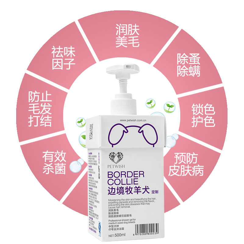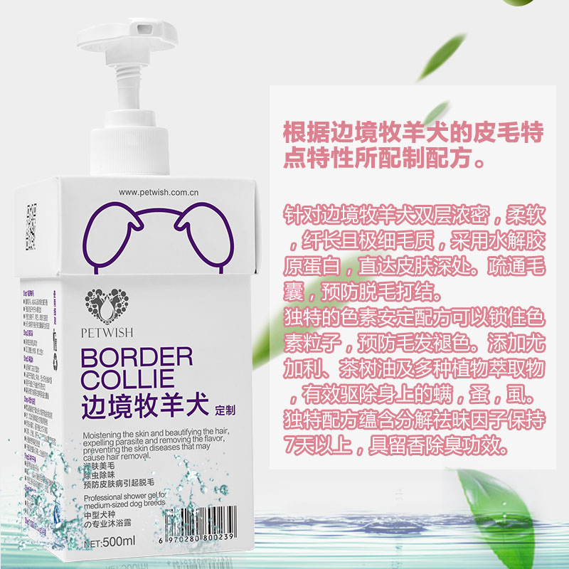 Border collie, border collie, special dog shower gel, sterilization, deodorization, antipruritic and acaricidal pet bath products shampoo