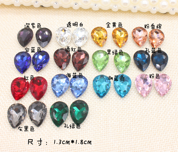 1 3cm * 1 8cm shiny water drop tip bottom silver bottom glass glazed water drill head decoration hair clip ornament DIY drill
