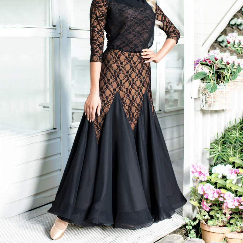 Black Pool Morden Dance National Label Dancing Female Practice Performance Dress Lace Big Pendulum Fish Bone Morden Dance Dress S16010