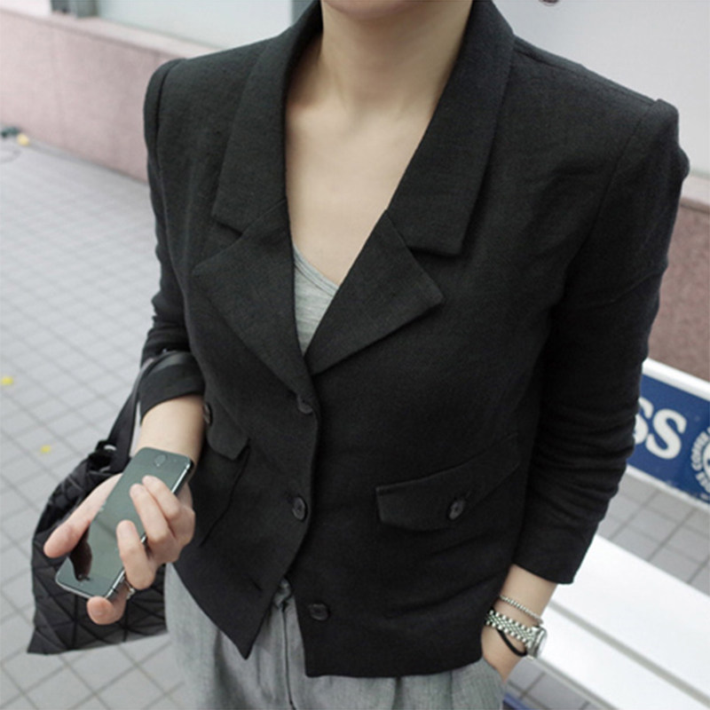 2022 Spring Summer Korean version of the new women's slim fit short coat female linen cotton hemp material to be repaired with a small western dress