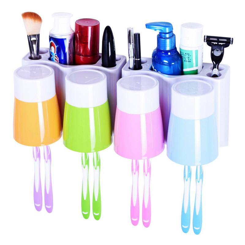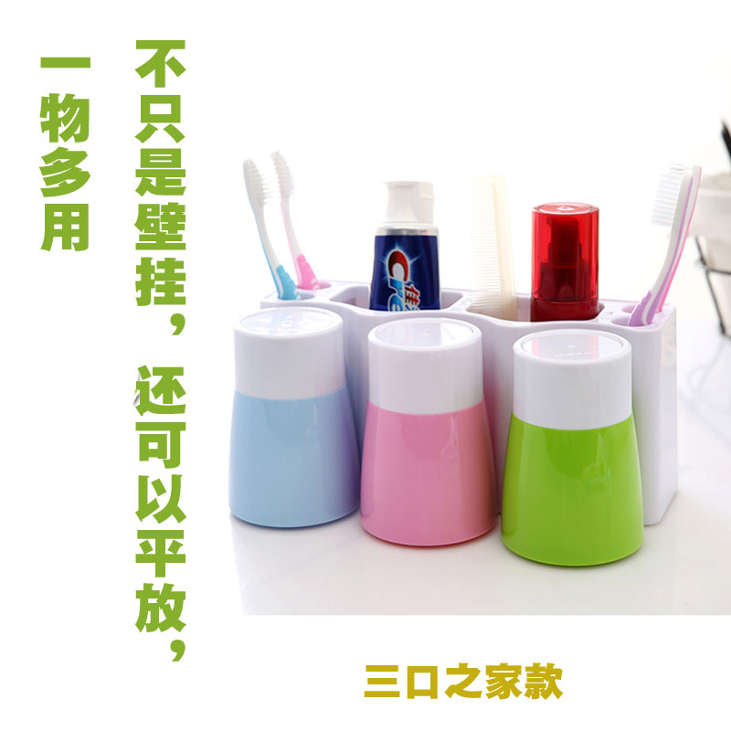 Toiletries Toothbrush Holder Suit Four-Mouth Home Suction Wall Type Couple Bathroom Wall-mounted Toothbrushing Cup Three-Mouth Shelve Shelve