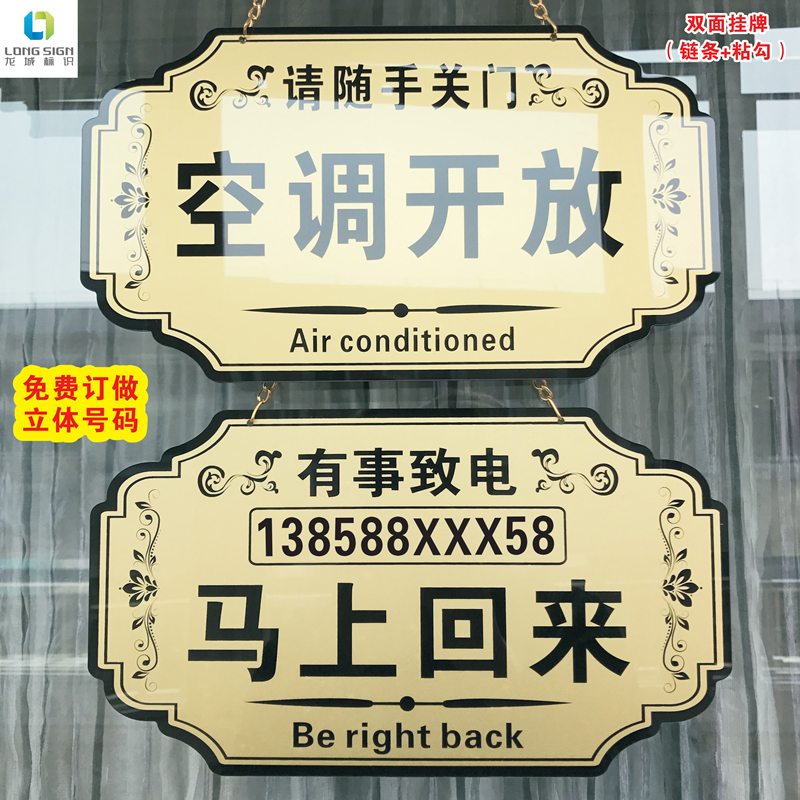 If you have something to go out, welcome to the sign It's open It's closed Come back right away The house number is listed on both sides