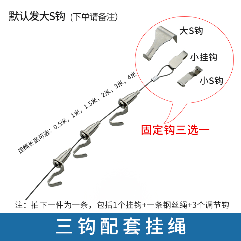 Hanging picture rail strip Painting and calligraphy hook Wire hook Adjustable hanging picture guide channel Steel wire rope free hole hanging picture hook