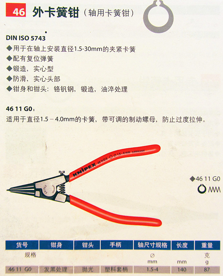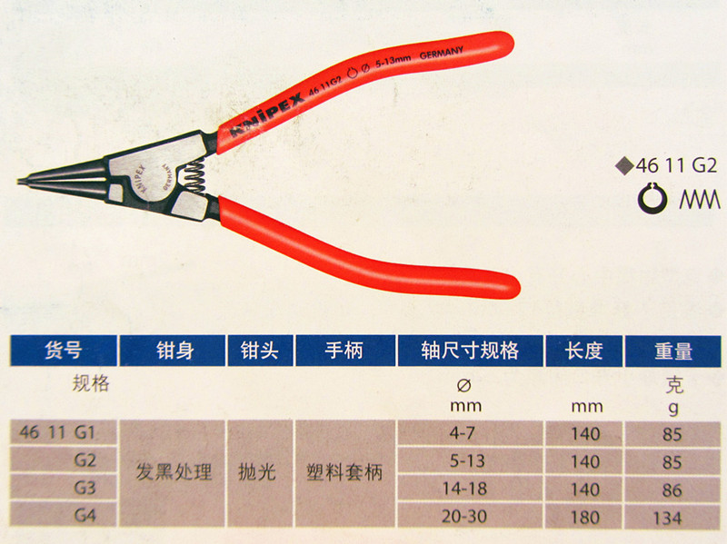 Keny Pike KNIPEX straight-head extra-clad clamp 4611G0 4611G1 4611G2 4611G3 G4