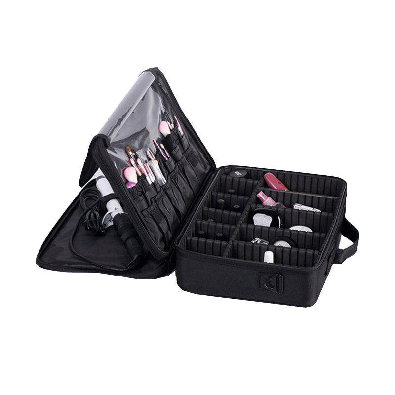 Special large double layer of makeup case (with mirror) large number double-double-black portable transparent ornament containing box (with shoulder strap)