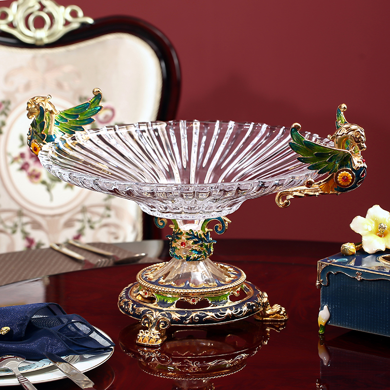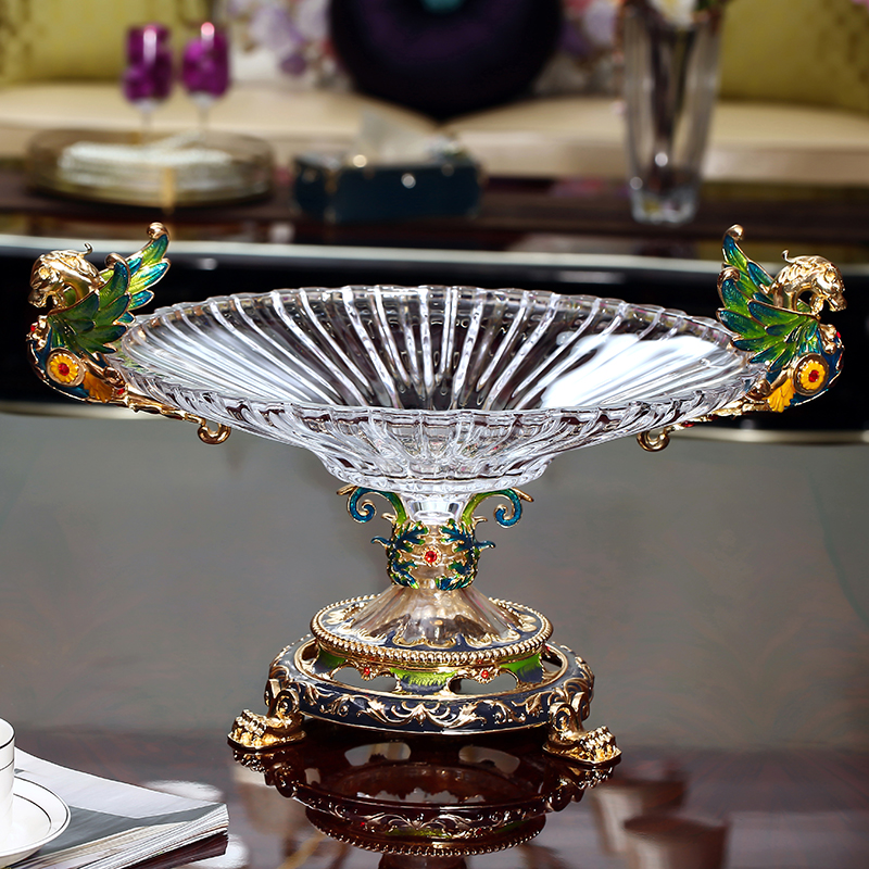 Crystal glass fruit plate New Chinese style creative personality snack sugar dried fruit plate European style creative living room dining room decoration