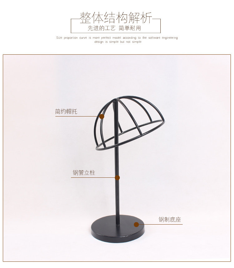 Black white support wig head mold hat display shelf fashion hat bracing hat holder metal wrought iron hat rack props