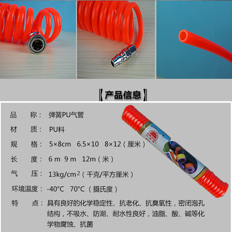 Air compressor trachea PU telescopic spiral pipe 6 meters 9 meters 12 meters with joint PU pipe Air pump dust blowing gun spring tube
