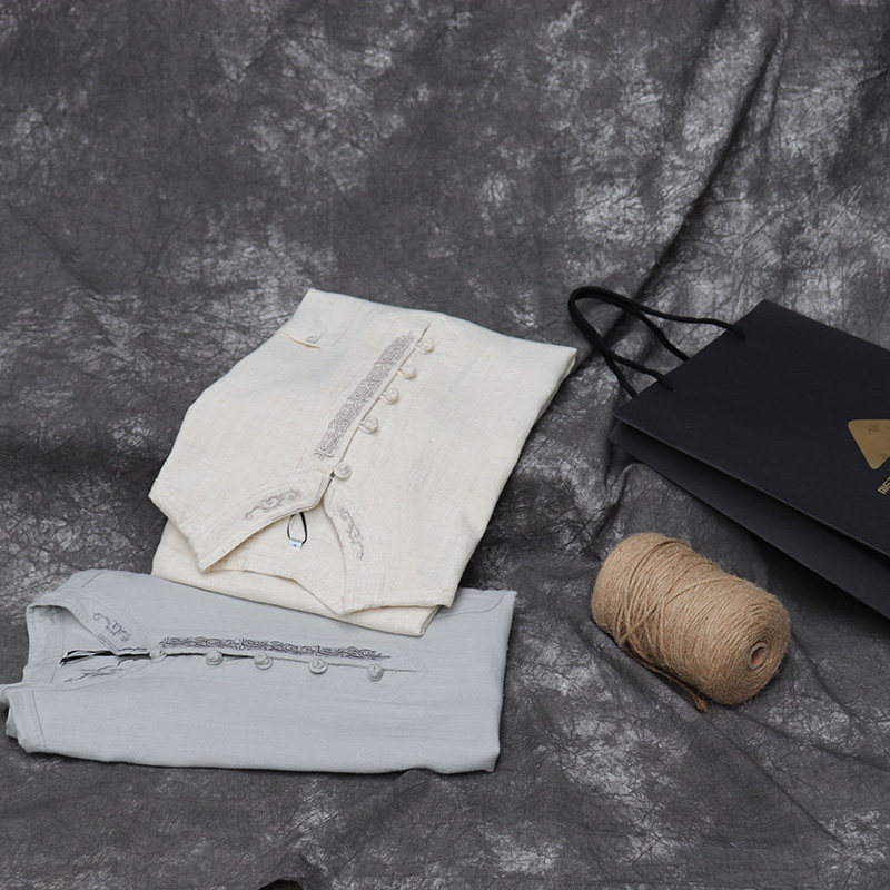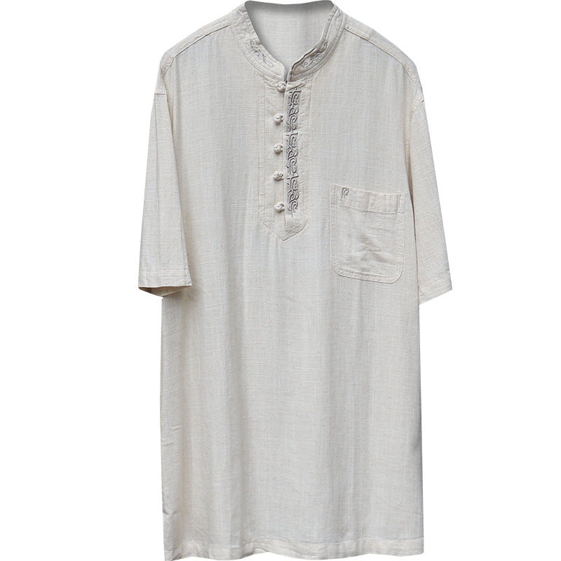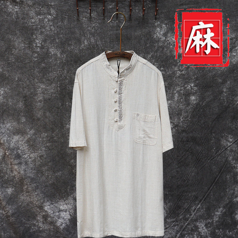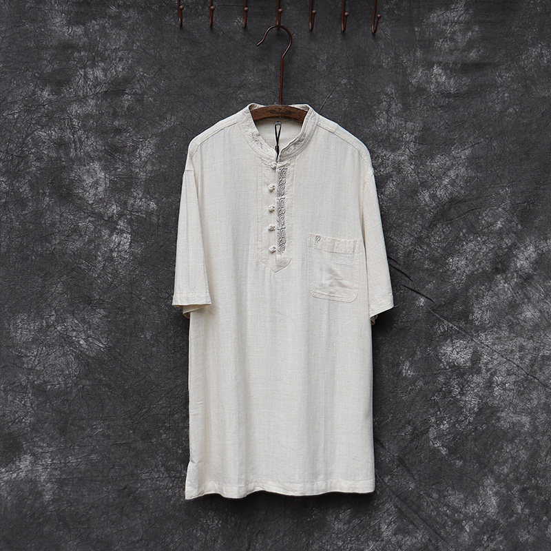 Tang Dress Retro China Wind Loose Cotton Linen T-shirt Short Sleeve Slim Fit linen Men's Aged Summer Blouse