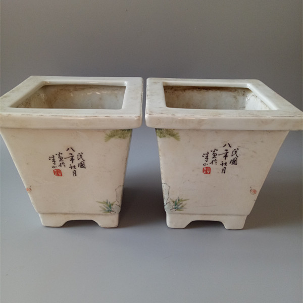 Hot - selling Renminbi during the period of paste hand - made rooster flower pot a pair of old - fashioned antique porcelain