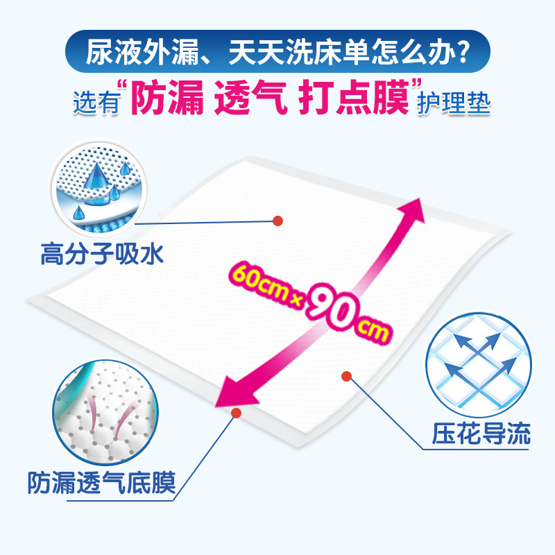 Konlejia Adult Care Mat 60x90 Elderly Disposable Male and Female Diaper Pad Diaper with Diaper
