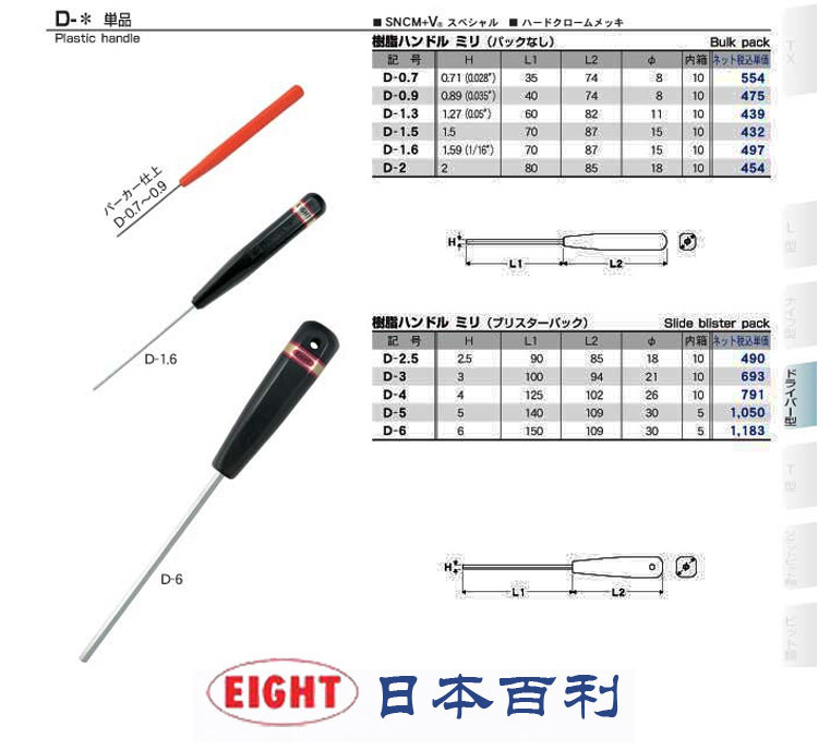 Japan Imports Bailey EIGHT Hexagon Screwdriver Screwdriver Screwdriver D-0 7 D-0 9 D-1 3