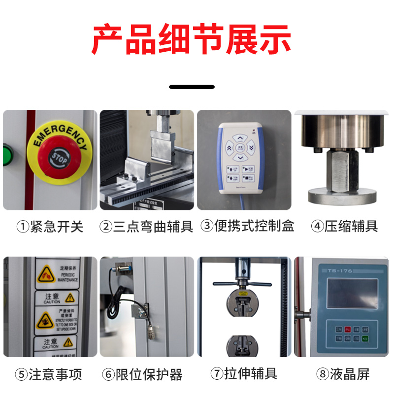 Single-arm digital display tensile testing machine (50N-5KN force value optional one) Single-arm microcomputer electronic tensile testing machine (50N-5KN force value optional one) Digital display gate universal testing machine 10KN Digital display gate universal testing machine 20KN Digital display gate universal testing machine 30KN digital display gate universal testing machine 50KN digital display gate universal testing machine 100KN microcomputer portal universal testing machine 10KN (1 level) Microcomputer portal universal testing machine 20KN (Level 1) Microcomputer gantry universal testing machine 30KN (1 level) Microcomputer gantry universal testing machine 50KN (1 level) Microcomputer gantry universal testing machine 100KN (1 level) Microcomputer gantry universal testing machine 0.5 level (50N-5KN force value optional) Microcomputer gantry universal testing machine 10KN (0.5 level) Microcomputer gantry universal testing machine 20KN (0.5 level) Microcomputer gantry universal testing machine 30KN (0.5 level) Microcomputer gantry universal testing machine 50KN (0.5 level) Microcomputer gantry universal testing machine 100KN (0.5 class) accessories