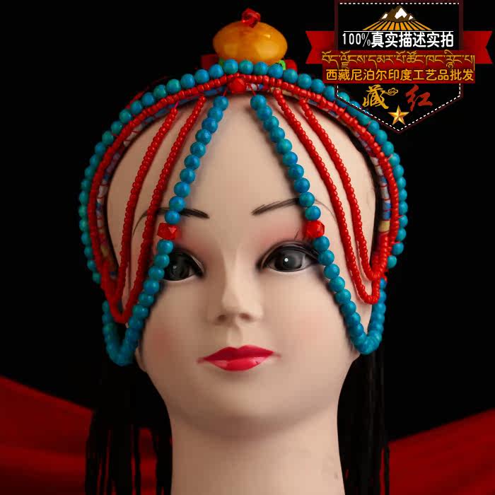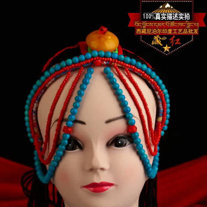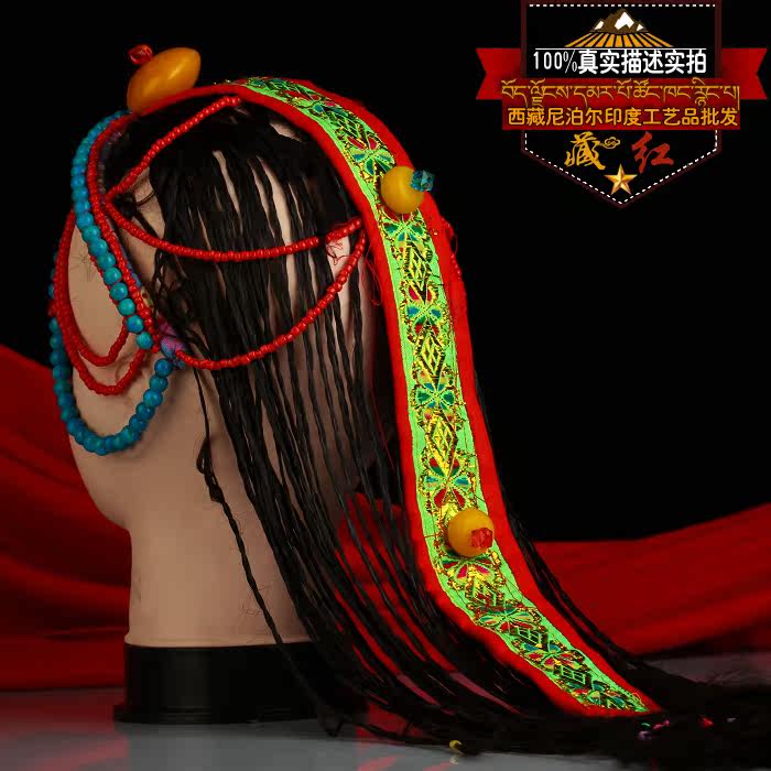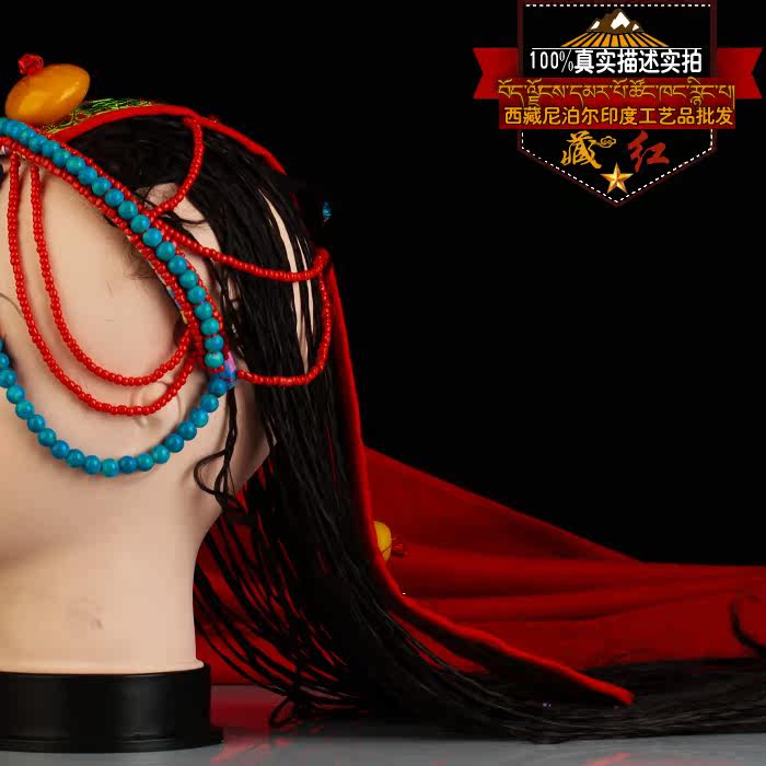 Tibetan Red Pure Handmade with Tibetan Hair Accessories Hair Stirrup National Featured Clothing Accessories Stage Performance Braid Head Accessories
