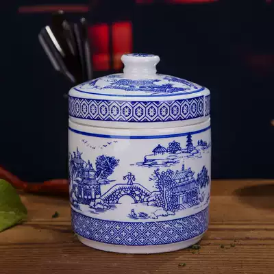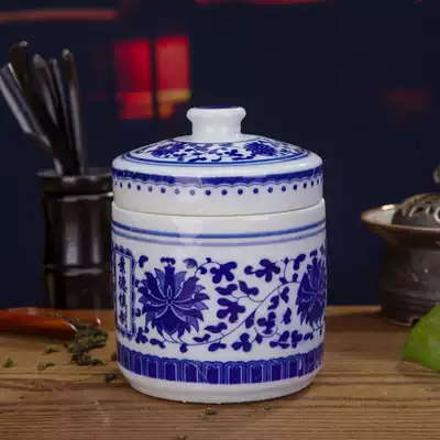Jingdezhen blue and white ceramic small 1 kg seasoning canned Chinese medicine paste jar Sealed jar Storage jar with lid