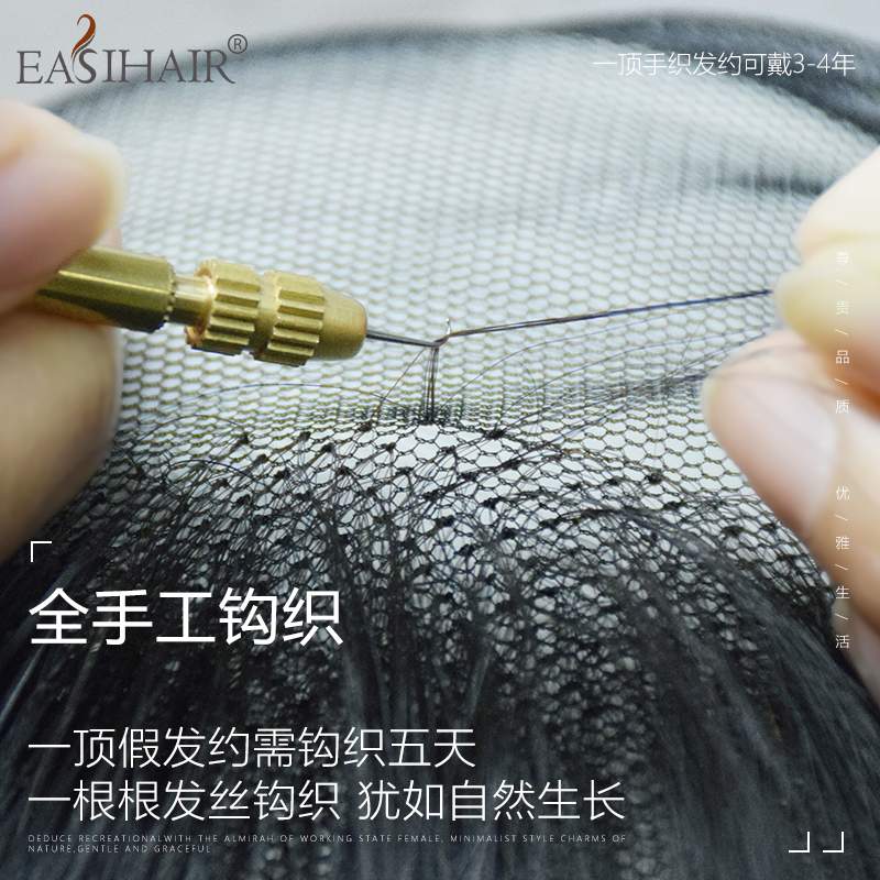 EASIHAIR full head cover type real hair wig Female medium long hair curly pear flower head curly hair Air bangs wig set