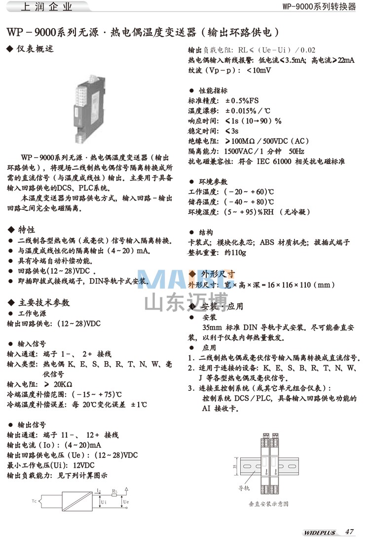 Shangrun instrument WP-9062 WP-9063 EKSBRTJNW two-wire thermocouple temperature conversion transmitter