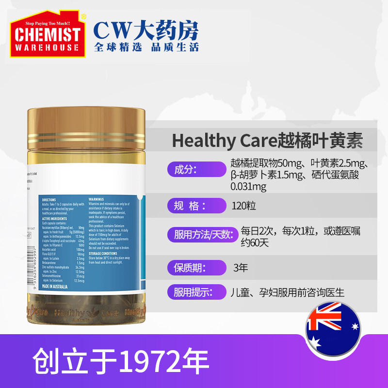 Healthy Care Bilberry Orange Lutein Extract 120 capsules Blueberry anthocyanins with computer Australia imported CW