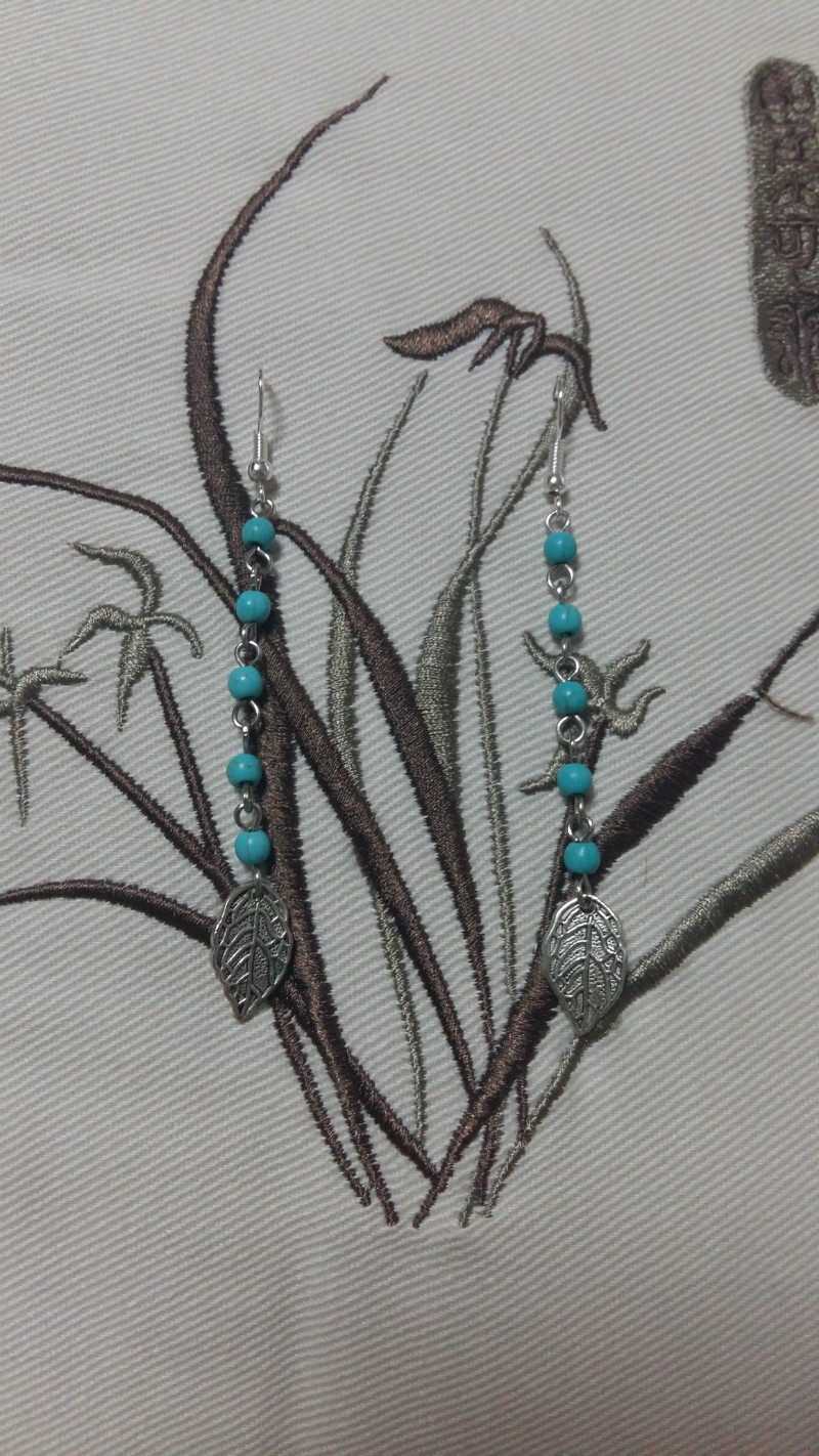 Han Opera Good Queen's Earrings Earrings Earrings Pendant Xu Yingxi Green Pine Stone Hidden Silver Leaves Long Version Streaming Su Qipao Ear Necklace