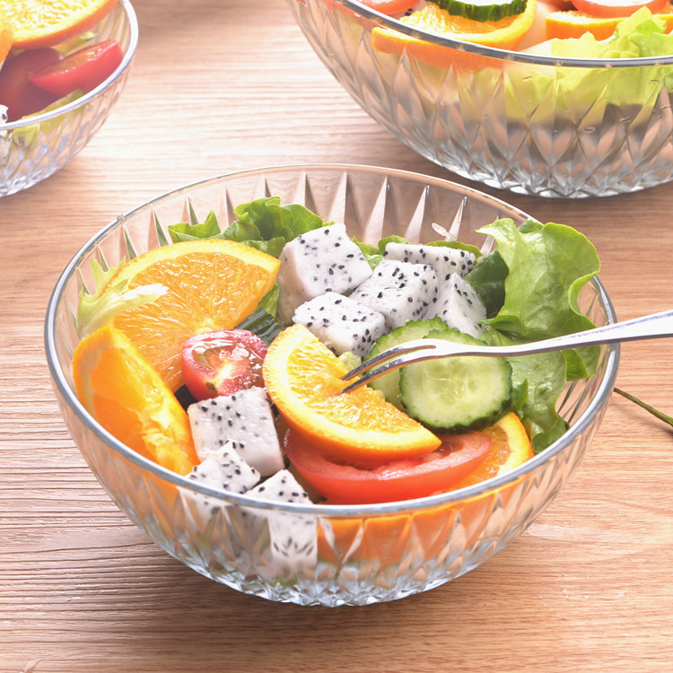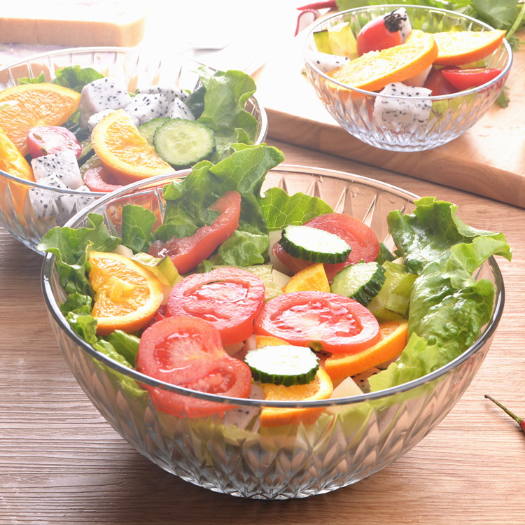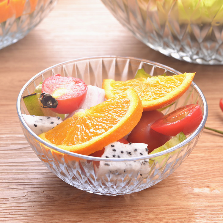 Diamond bowl with bowl of soup bowl of fruit salad bowl glass bowl transparent large cutting bowl with roast jobs