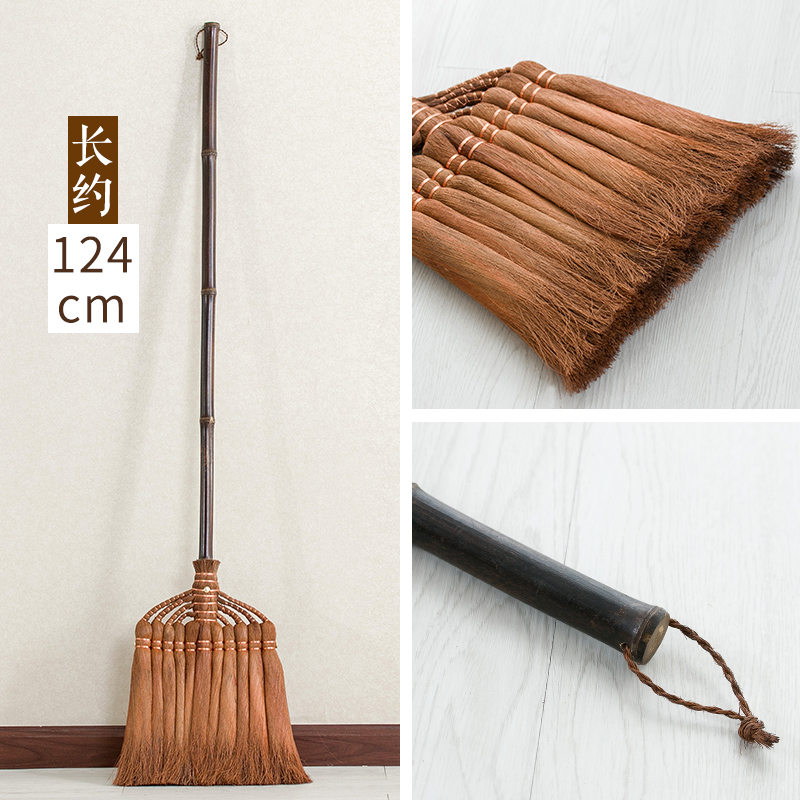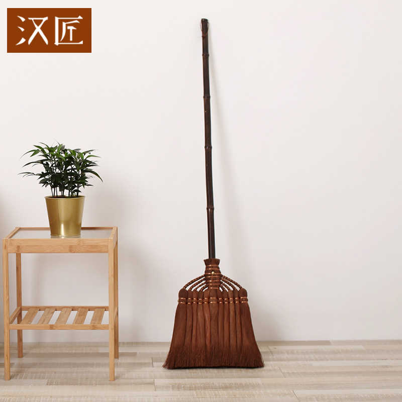 Hansmiths indoor floor sweep with soft hair and hands sweeping broom without bending the waist-hand woven plant brown broom long handle