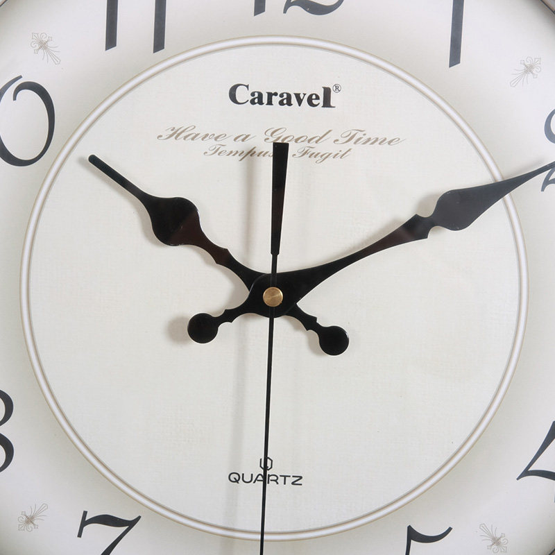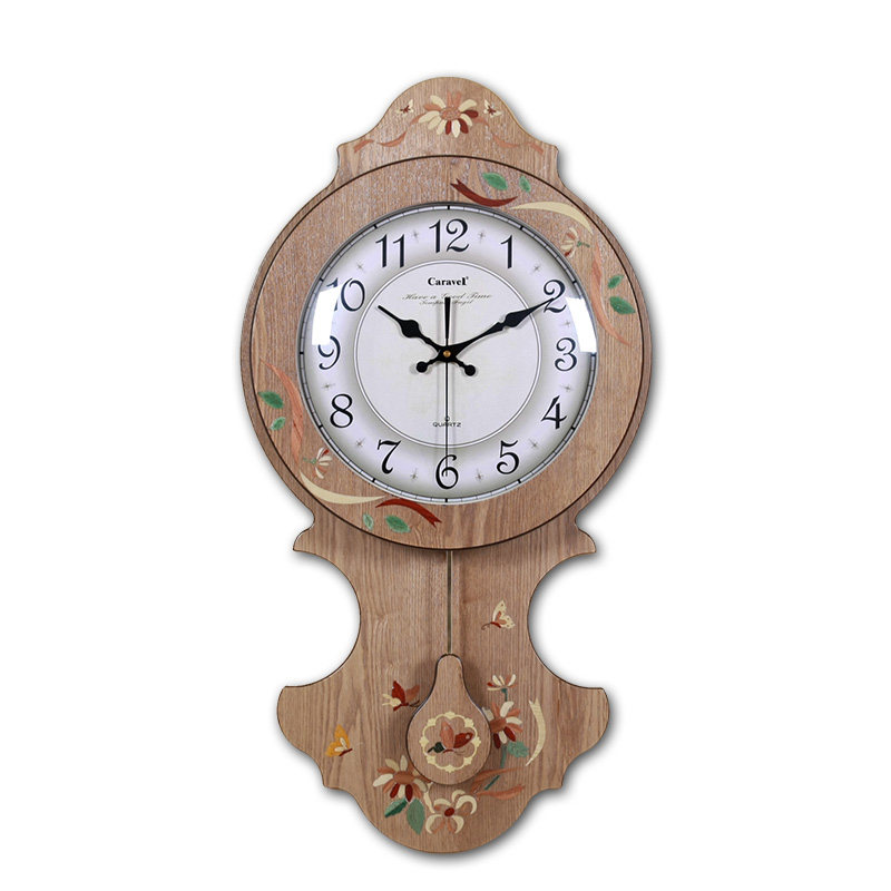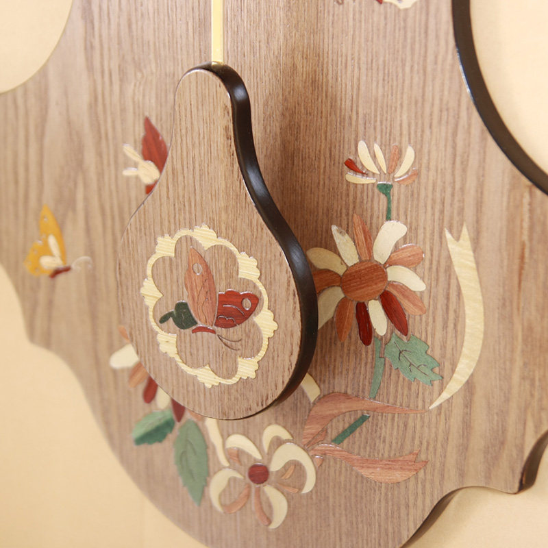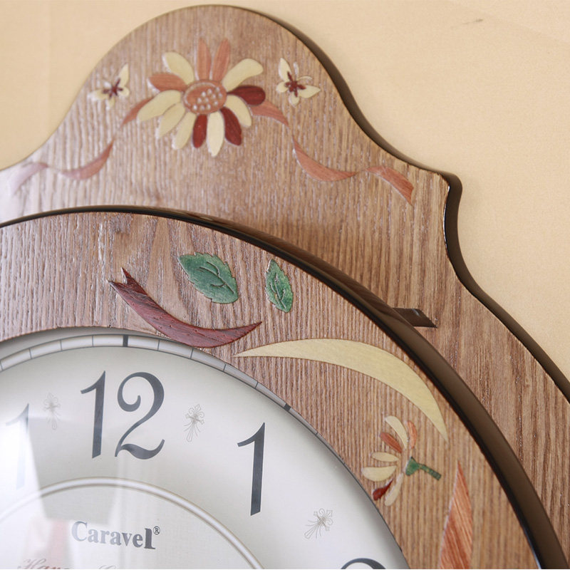 TQJ European style wood wall clock quartz clock living room clock bedroom muted Korean hand-painted flower hanging watch