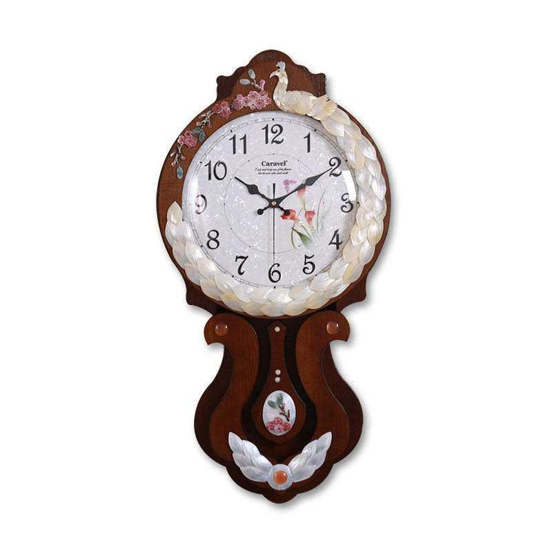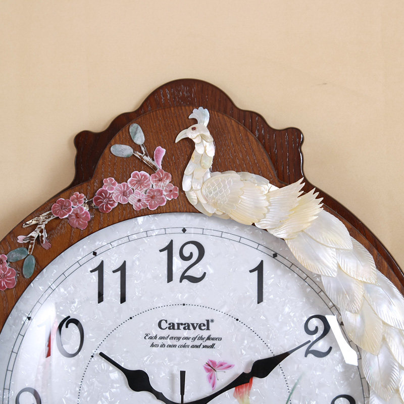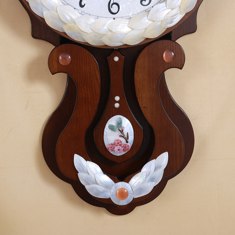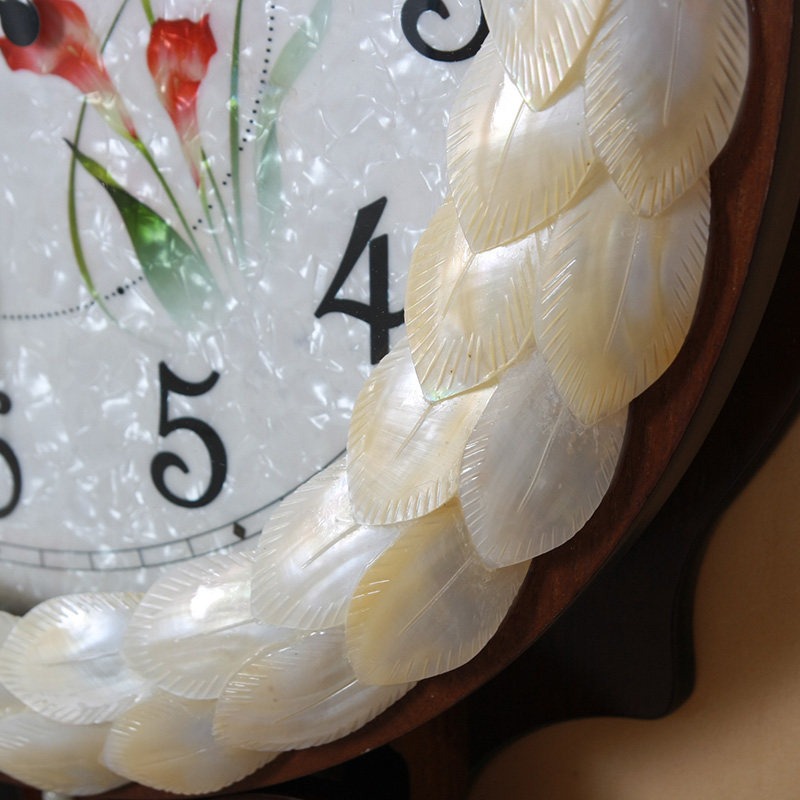 TQJ European style wood wall clock Korean color shell quartz clock living room clock bedroom muted hanging watch