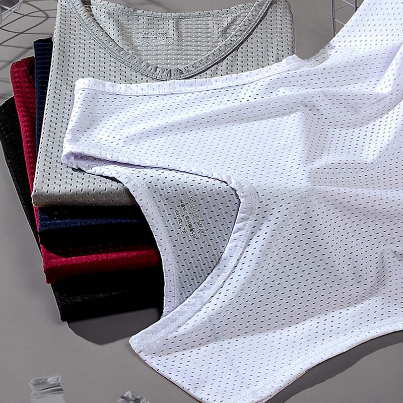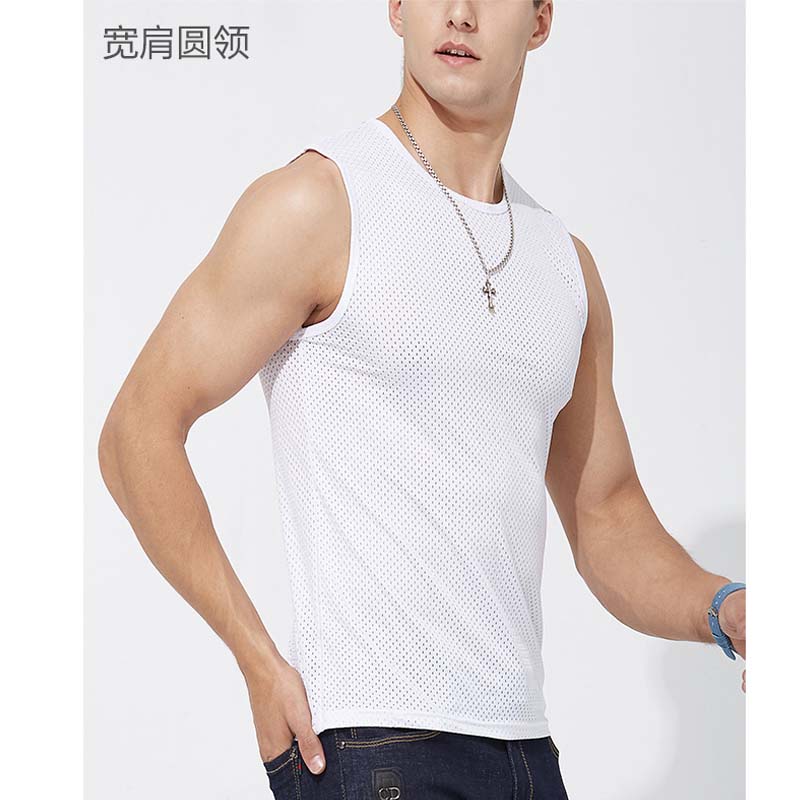 Men's ice silk mesh vest men's summer tide thin section hollow breathable quick-drying sports wide shoulders sleeveless T-shirt bottoming shirt