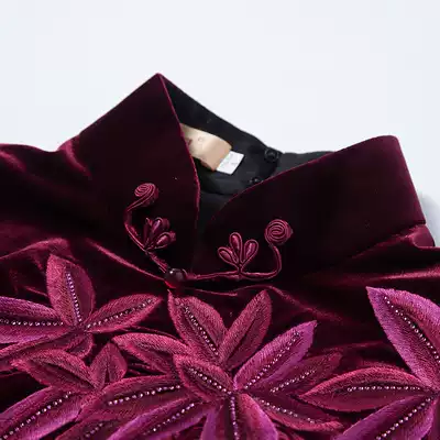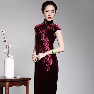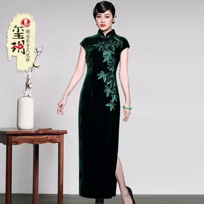 Yue high-end gold velvet embroidery handmade long cheongsam retro mother improved banquet dress
