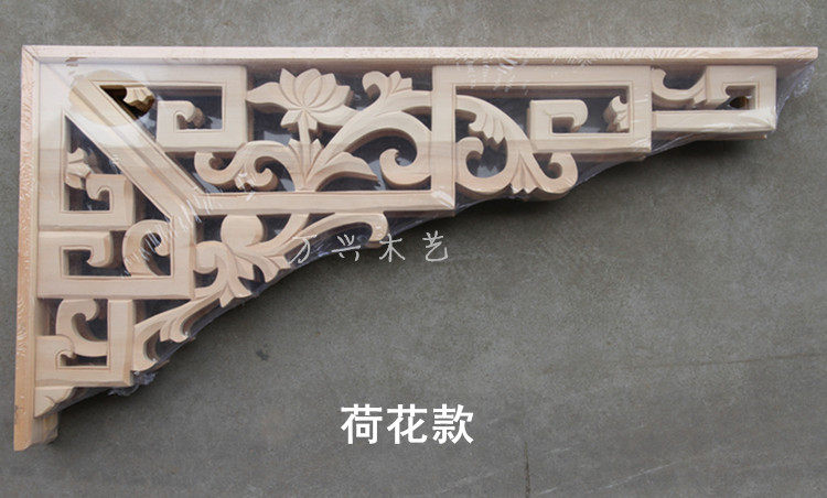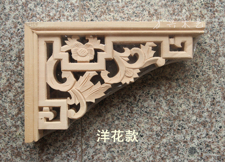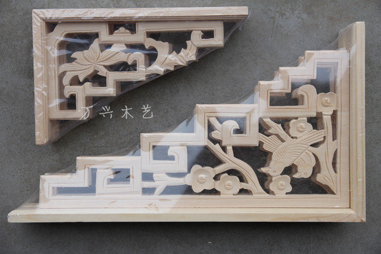 Dongyang wood carving solid wood corner flower Chinese decoration decal Antique gun corner flower door corner carving piece European lintel decoration