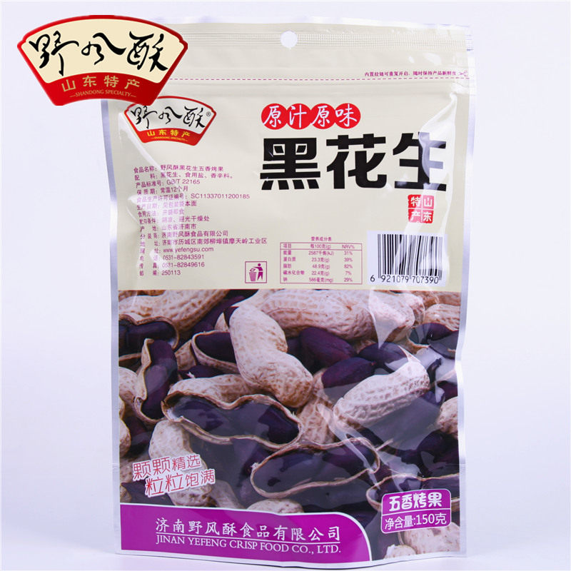 Wild Wind Crisp Shandong Jinan Specialty Original Fruit Five Spice Roasted Fruit Ripe Black Peanut Shelled Purple Skin 150g Bag